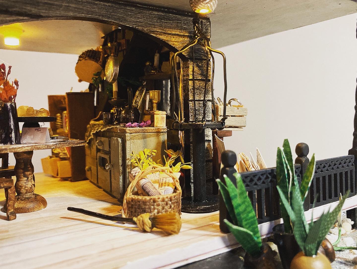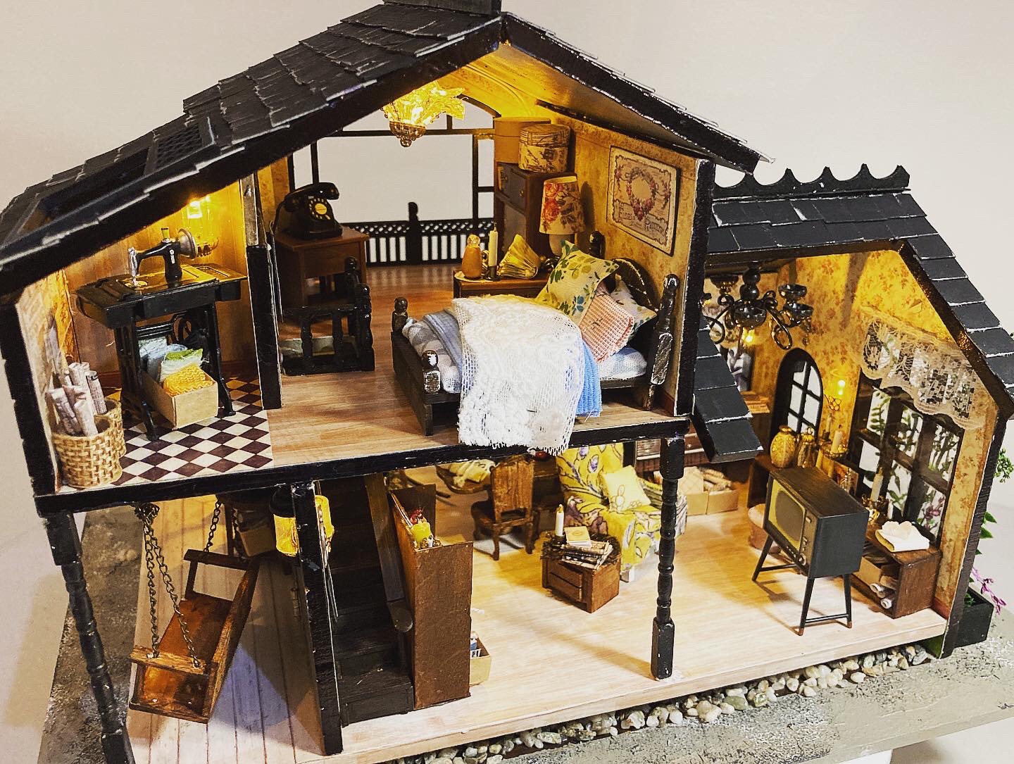 My minis are taking over my place but it’s been addicting to do these things. The kits are sold as that – kits – which comes with all the bits and bobs needed to complete the piece: wooden pieces you stick together, cloths, paper templates, wires, lighting. It also typically comes with a few essential tools and an instruction booklet, and in most cases, a dust cover. However for this house, I had made quite a number of modifications, often called a ‘kit bash.’ A few of these were: tiling the roof, repainting (and weathering down) the exterior walls, adding rocks (which are really tiny aquarium stones) around the house, peppering the place with overgrown plants. To see how vastly different my build was from the kit’s design, check out how the original looks like when it’s made here.